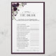 Jeu de douche nuptiale moderne et élégant "qui connaît le mieux la mariée" avec un bouquet floral de roses d'aquarelle douce dans les tons violet de prune, avec des feuilles botaniques d'eucalyptus vert luxuriant, et bordé de violet de prune. Personnalisez vos questions en noir, accentué par une belle calligraphie à la main moderne. Partie d'une suite coordonnée. Voir la suite ici : https://www.zazzle.com/collections/plum_purple_watercolor_floral_bridal_shower-119250449992466290 Contacter le concepteur pour les produits correspondants. Copyright Anastasia Surridge pour Invitations élégants, tous droits réservés.