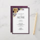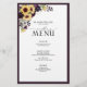 Créez le cadre parfait de la réception avec ce menu branché de 5,5 x 8,5 pouces, avec un bouquet de fleurs violettes de prune, de tournesols et de verdure botanique, et bordée de violet de prune. Personnalisez vos détails accentués par une belle calligraphie à la main moderne. Parfait pour, mais pas limité à, ce mariage de jardin et de jardin. Partie d'une suite mariage que nous espérons que vous aimez autant que nous : https://www.zazzle.com/collections/elegant_sunflower_plum_purple_watercolor_script-119479724198769053 Copyright Anastasia Surridge pour Invitations élégants, tous droits réservés.