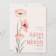 Ces invitations de mariage simplement élégantes de 5" x 7" présentent des pavots sauvages dans des teintes de corail aquarelle sur un arrière - plan de corail léger. Ajoutez votre site Web mariage pour créer votre propre code QR.