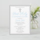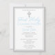 Célébrez cette étape spéciale avec une magnifique invitation à la première communion moderne. Ce design se compose d'une simple croix argentée contre une bordure blanche arrière - plan et grise. Créez l'invitation parfaite de la première communion du garçon en customisant la couleur, la police, la date et tous les détails du texte.