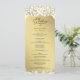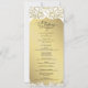 Ce programme de mariage rayonne de sophistication avec son arrière - plan doré et ses fleurs damassées ornées. Les détails du programme sont magnifiquement exposés sur un panneau doré, se mélangeant harmonieusement avec le design complexe pour créer un look luxueux et intemporel. La riche palette dorée offre un style royal et classique, ce qui rend ce design parfait pour des célébrations mariages élégantes et formelles.