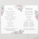 Floral verdure programme de cérémonie mariage traditionnelle avec élégante calligraphie. ce design comprend une cérémonie mariage programme rose poussiéreux, ordre de service simple floral, fleurs botaniques minimalistes, typographie script de calligraphie minimale, police de script de calligraphie moderne, cérémonie d'église traditionnelle formelle, script texte minimaliste, feuillage papier pliant, programme double face simple, programme de mariage simple modèle