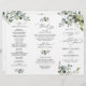 Conçu pour coordonner avec notre collection Boho Greenery mariage, ce programme de cérémonie personnalisable comprend des branches d'eucalyptus aquarelle avec une police serif classe et d'élégants graphiques de texte calligraphie. Éléments correspondants disponibles.
