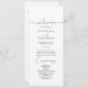Cet élégant programme de mariage de calligraphie simple est parfait pour un mariage rustique. Le design sobre et élégant présente une typographie de script classique et sophistiquée en noir et blanc.