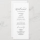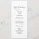 Ce programme de mariage élégant est parfait pour un mariage simple. Le design minimaliste noir et blanc présente une typographie romantique avec style glamour moderne. Personnalisable dans n'importe quelle couleur. Gardez le design minimal et élégant, tel quel, ou personnalisez-le en ajoutant vos propres graphiques et artwork. Inclure le nom de la mariée et du marié, la date et le lieu du mariage, le message de remerciement, l'ordre de service, la fête de la mariée et un mémorial optionnel "en mémoire d'amour".