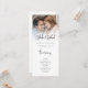Téléchargement numérique imprimable ou imprimé Elegant Photo Overlay Script Wedding Programme. Elégance contemporaine avec votre photo sur le bord supérieur derrière une couche de teinte graduée avec le texte partiellement recouvert sur le dessus. Il vous suffit de remplacer l'exemple d'image par le vôtre et de personnaliser facilement les mots à vos propres détails.