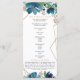 Elégant programme de mariage floral bleu or poussi