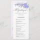 Cette élégante carte de programme de mariage est conçue avec un thème vintage aquarelle floral dans des tons doux de violet et gris, lui donnant un aspect antique et intemporel. Parfaitement adapté aux mariages romantiques et classiques, ce programme de cérémonie décrit chaque partie importante de la célébration — des chansons solo, des sièges des parents, des processionnels aux voeux, aux anneaux, à la prière et à la déclaration du mariage. L'aquarelle à motifs floraux encadre la carte de manière élégante, ce qui en fait non seulement fonctionnelle, mais également un gardien pour les clients. Avec son design à l'ancienne, ses fleurs délicates et son agencement raffiné, cette carte de programme de mariage complète tout ensemble de papeterie florale et ajoute du charme à votre journée de mariage.