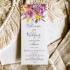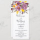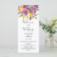 Élégant programme de mariage hivernal violet d'automne avec une calligraphie moderne et élégante le mariage de Script dans les fleurs violet, orange et jaune avec feuillage vert sauge.