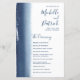 Programme de mariage moderne et créatif avec un design simple avec un trait bleu marine d'aquarelle sur le côté gauche, sur un arrière - plan blanc. Ajoutez vos cérémonies à l'avant et votre fête de mariage à l'arrière. Ce design unique est idéal pour un couple artistique. Ces programmes de mariage bon marché sont imprimés sur des feuilles de papier pour une option économique.