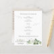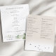 Un programme de mariage magnifiquement conçu avec un paysage d'aquarelle douce avec des tons verts sereins, des arbres délicats, des oiseaux volants et des silhouettes de montagne lointaines. L'avant présente la chronologie de votre mariage avec six horodatages personnalisables, tandis que l'arrière comprend l'espace pour la liste complète de votre mariage et les détails de la cérémonie. Une façon paisible et élégante de guider vos invités à travers votre journée spéciale.