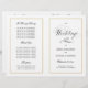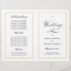 Ce programme est une page de 8,5 x 11 qui vous oblige à le plier pour l'assembler. La bordure en or est d'une couleur mate. Programme de mariage classique en noir et blanc avec une touche moderne avec l'élégant script du mot "Mariage" sur la "couverture" extérieure et la bordure en or.