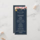 Ce menu de réception à l'aquarelle moderne et élégant, fleurie et à l'aquarelle à la mode, propose des lanternes romantiques et rustiques, des lampes à cordes et de l'élégant corail, de l'or rose, des pivoines roses et d'autres fleurs sur un arrière - plan bleu marine avec une bordure en or.Il est facile de customiser avec vos propres informations sur le site mariage.