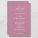 Ce programme de mariage élégant a un arrière - plan rose attrayant et texte en blanc dans une belle combinaison de typographie de bloc et de calligraphie manuscrite moderne. Possibilité de modifier et d'ajuster le texte en sélectionnant la personnaliser plus loin. Avant avec les détails de la cérémonie mariage, arrière avec les noms de la fête de mariage et message de remerciement pour vos invités ou tout autre texte que vous aimez, notre est simplement un exemple. Elégant, simple et gracieux. Une partie de notre collection "Mauve Pink Watercolor Botanical Monogram Mariage" avec une variété de produits de coordination disponibles, y compris le menu, les cartes de sièges, les numéros de table, et plus encore. Visitez la collection entière avec ce lien : https://www.zazzle.com/collections/mauve_pink_watercolor_elegant_monogram_wedding-119235672549123464
