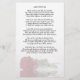 Cette insertion est conçue comme un complément pour notre programme plié correspondant. Utilisez-le pour les prières, les hymnes ou toute information supplémentaire dont vos invités pourraient avoir besoin. Il présente un design simple mais joli avec une seule rose rouge à long tige allongée sur son côté réfléchissant dans un bassin d'eau avec des vagues et des ondulations. La photo est présentée comme un filigrane pâle, donc si le texte s'étend sur elle, vous pouvez toujours la lire. Belle façon d'ajouter plus de fonctionnalités à vos programmes de mariage.