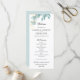 Ce programme de mariage, qui est parfait pour un mariage d'été, présente une belle aquarelle graphique de branches d'eucalyptus accentuées de botaniques d'or. Personnalisez avec l'ordre de votre cérémonie et un merci sur le devant et ajoutez la fête de mariage sur le dos.