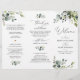 Conçu pour coordonner avec notre collection Boho Greenery mariage, ce programme de cérémonie personnalisable comprend des branches d'eucalyptus aquarelle avec une police serif classe et d'élégants graphiques de texte calligraphie. Éléments correspondants disponibles.