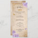 Créez vos propres menus élégants qui contiennent beaucoup d'espace sur le dos pour inclure les détails de l'événement. Ces menus personnalisés du programme de la quinceañera peuvent être libellés pour un coing (XV), mais ils peuvent travailler magnifiquement pour les mariages royaux, une Cendrillon princesse douce fête de 16 ans, une fois sous une douche nuptiale, baby shower, et d'autres grands jours. Le conte de fées fleuri de Raphaela Wilson présente des roses d'aquarelle aux teintes douces de lavande lilas, et des accents d'or faux métallique, comme on peut le voir sur la tiare princesse / couronne reine, bordure fantaisie, confetti de papillon étincelant parties scintillant, et les feuilles de verdure rose. L'arrière - plan est une texture papier parchemin à défilement vintage et ancienne, mais il peut être remplacé par n'importe quel arrière - plan couleur que vous souhaitez. Les éléments d'illustration peuvent être ajustés sur ces cartes de menu do-it-yourself modèle personnalisées - même si la taille est modifiée. Vous préférez des sélections de polices alternatives au script de calligraphie noir et à la typographie moderne ? Changez simplement le style selon ce qui convient le mieux à votre design. Les deux côtés de ces cartes de menu quinceanera peuvent être personnalisés, non seulement avec entrée de fête / nourriture, mais aussi avec l'horaire des événements ou un programme simple. Ces cartes de programme de mariage violet clair et or peuvent ajouter cette étincelle supplémentaire aux tables d'invités que vous cherchez. De plus, vous pouvez envisager de laisser un message de remerciement personnalisé au lieu d'un programme si vous le désirez. Gardez le design unique vintage de conte de fées orné, ou allez minimaliste en cachant quelques éléments d'oeuvres d'art... Bon appétit ! Catégorie : élégants menus mariage lavande avec fleurs / papillons; menus mariages lilas avec rose; menus mariages do-it-yourself dîners de répétition. Couleurs du thème de la quinceanera or et violet clair : violet pastel, lavande, lilas, brun clair, crème ivoire, doré champagne beige, noir et jaune.