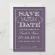 Elegant Purple Save the Date Photo Faire-part : Utilisez ces invitations élégantes et vintages pour invitation vos invités au mariage de vos rêves. Customisez les couleurs, le texte et la police, ainsi que vous pouvez ajouter vos propres images. Changez les informations de l'événement pour qu'elles correspondent à vos spécifications mariages ! Si vous souhaitez modifier le graphique, contactez-moi par l'intermédiaire de mon magasin ou par courriel : theantiquechandelier@gmail.com AntiqueChandelier© http://www.antiquechandelier.ca