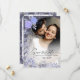 Une carte de rêve Save the Date conçue avec des accents de lavande douce et de fleurs violettes encadrant votre photo de couple préférée. L'élégante calligraphie ajoute un charme romantique, tandis que la superposition florale translucide apporte profondeur et sophistication. Parfait pour les mariages élégants, royaux ou printaniers, ce design personnalisable rend votre mariage intemporel et gracieux.