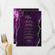 This elegant modern wedding menu features a purple watercolor agate background trimmed with faux silver glitter. The customizable text combines silver gray handwriting script and copperplate fonts. The reverse side features a matching purple and silver agate design.