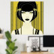 Élégant Flapper Art Déco Vintage des années 1920. Noir et jaune. Beau visage avec bob de style années 1920, franges, bangs. Disponible dans d'autres tailles. Choisissez votre taille préférée dans la liste déroulante.