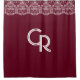 Un rideau de douche sur mesure unique pour votre décor de salle de bain. Elégant rideau Vintage Victorien Bourgogne en dentelle blanche. Personnalisez avec vos propres initiales monographiques - ou supprimez. Super idée cadeau.