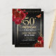 Elégant Faux en or confetti met en évidence sur la bordure supérieure et inférieure. Roses rouges profondes et brillantes aux accents floraux dorés. Tout le texte est ajustable et facile à changer pour vos besoins de partie. Grande élégante conception modèle de 50ème anniversaire.