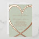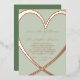 Elégant Rose Coeur Or & Faire-part de mariage Vert