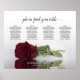 Ce magnifique tableau de sièges a assigné des tables pour 40 personnes à 4 tables - 10 personnes par table. Le design est élégant, sophistiqué, romantique et chic, avec une seule rose de couleur bordeaux, marron ou vin rouge réfléchissant dans l'eau. Le titre dit "s'il vous plaît trouvez votre table" dans la calligraphie de script dentée, et il y a de l'espace pour les noms du couple et la date du mariage. Un excellent moyen de rendre votre réception belle tout en facilitant la recherche de tables par vos invités.