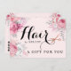Certificat cadeau moderne et élégant pour coiffeurs avec faux ciseaux d'or rose en cuivre, roses roses et blanc et police calligraphie élégante.