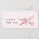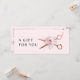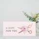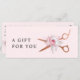 Certificat cadeau moderne et élégant pour coiffeurs avec faux ciseaux d'or rose en cuivre, roses roses et blanc et police calligraphie élégante.