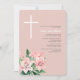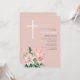 Célébrez le baptême de votre enfant avec une magnifique invitation à la floraison rose. Le design est composé de beaux lys roses aquarelle et d'une élégante croix blanche, dressée contre un arrière - plan moelleux. Utilisez les outils de conception pour customiser le texte et les polices. Aussi disponible en téléchargement numérique.