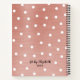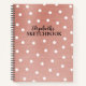 Un élégant livre d'or rose avec des pois blancs. Amusant pour un artiste. personnalisez-le avec votre nom sur le devant et le dos du carnet d'esquisses. Conçu pour vous par Blackberry Boulevard.