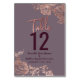 Elégant, moderne pays et tendance imprimé rose or floral sur un mauve violet arrière - plan et manuscrit de la typographie de police de script de brosse, cartes de numéro de table mariage. Ce design classique et sophistiqué est parfait pour une réception de mariage classe, élégante et branchée. Personnalisez avec des numéros de table personnalisés sur le devant ou ajoutez votre propre message personnel en cliquant sur le bouton "customiser". Ajoutez également votre propre monogramme customisé initial sur le dos. Toute la conception d'impression photo.