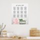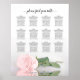 Ce tableau de 12 places mariage est beau, sophistiqué, romantique et élégant. Il dispose d'un seul rose de couleur rose vif réfléchissant dans l'eau avec des vagues et des ondulations. Le titre dit "s'il vous plaît trouvez votre table" dans la calligraphie de script fantaisie. Il y a de la place pour les noms du couple et la date du mariage. Ce graphique a des affectations de table pour 120 invités - 10 personnes par table.