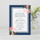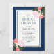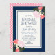Élégante invitation à la douche nuptiale florale avec roses roses, coraux et fleurs jaunes, et feuilles verts avec un centre blanc off et des bordures bleues contre un arrière - plan bleu sur le devant. Invitation a un bébé rose doux en vichy côté arrière. Consultez les articles correspondants et autres articles de douche/mariage nuptiale ici https://www.zazzle.com/rosewoodandcitrus/gifts?cg=196540141241316965&rf=238364477188679314 Personnalisez cette invitation avec vos détails en remplaçant le texte de l'espace réservé. Pour plus d'options comme changer la police, la taille du texte/la couleur, l'espacement entre les lettres ou pour contracter ou développer le texte courbe cliquez sur le bouton "Personnaliser". *Veuillez noter que le filigrane Zazzle qui apparaît dans l'aperçu du zoom n'apparaîtra PAS sur le produit imprimé final. © Bois de rose et agrumes