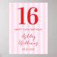 Créez votre propre affiche personnalisée de fête du 16e anniversaire avec typographie moderne et arrière - plan motif rose rayé