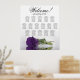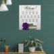 Cette carte moderne à mariages floraux dispose de 16 tables au design romantique et présente un superbe rose royal violet sur son côté, se reflétant dans une piscine d'eau. Le titre, "Bienvenue ! S'il vous plaît Trouvez votre table" est écrit élégamment dans les lettres de calligraphie de script, et il y a suffisamment d'espace en bas pour les noms du couple et la date mariage. Le tableau peut accueillir 160 invités, avec 10 sièges attribués à chaque table, ajoutant élégance, classe et style à votre réception de mariage tout en permettant aux invités de trouver leur siège de manière commode.