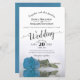 Ce magnifique budget ou faire-part de mariage abordable présente un design romantique avec un unique rose bleu ciel, bleu ciel ou bleu azur à longue tige posé sur son côté et réfléchissant dans une piscine d'eau. La typographie comprend une calligraphie de script dentée et une disposition sophistiquée. L'arrière est de couleur turquoise marbrée. Merveilleuse façon d'invitation vos amis et votre famille pour partager votre joie dans votre journée spéciale.
