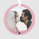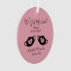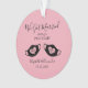 Une écriture moderne et élégante, rose vif, "Nous nous sommes mariés pendant une pandémie" typographie avec des masques de coeur noir Mr & Mrs First Christmas Ornament pour les jeunes mariés.