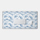 Elégant et romantique bleu gravé roses vintages, fleurs, vignes, feuilles et papillons avec des rubans et arcs entrelacés sur un arrière - plan blanc.