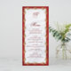Frammentez votre menu mariage avec élégante filigree métallique rouge et or bijoux. Le satin blanc dans l'arrière - plan ajoute au luxe. Customisez facilement le texte bordeaux de coordination dans les polices classiques.