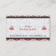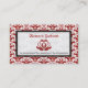 Cartes de visite élégants de mode rouge damassé. Laissez une première impression très favorable avec ces cartes de visite de classe. Votre nom est écrit sur un rectangle blanc avec un cadre noir. Le bel arrière - plan damassé rouge et blanc ajoute style et finesse. Il y a un motif rouge au centre de la carte. Personnalisez-le avec votre texte. Un design sophistiqué qui peut aussi être utilisé par les couturiers, les décorateurs, les stylistes, les salons de beauté, les thérapeutes, les planificateurs d'événements, les propriétaires de boutique et plus encore.