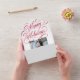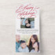Ce design carte photo de vacances unique dispose d'un arrière - plan blanc classique avec un magnifique script de calligraphie saluant en rouge avec deux photos. L'intérieur de la carte contient du texte et deux photos, une grande et une petite photo horizontale. À l'extérieur de la carte se trouve votre adresse de retour. La photo est arrachée et peut être gardée comme un gardien ! De plus, il faut commander des enveloppes - l'extérieur de la carte sert d'enveloppe !