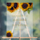 Ferme de campagne rustique personnalisée mariage acrylique glacé signe d'accueil avec de beaux bouquets de tournesols jaune or avec feuillage vert naturel et deux petits coeurs dorés et un faux script de typographie or. +++++++++++++++++++ Facile à customiser avec les noms de mariée et de mariée, la date et le lieu. ++++++++++++++++++ Convient pour l'été ou l'automne jardin extérieur ou jardin cérémonies et réceptions mariages.