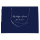 Elégant grand sac-cadeau bleu marine mariage avec texte blanc changeant et graphiques décoratifs