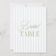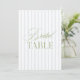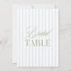 Ce numéro de table élégant est doté d'un arrière - plan rayé bleu doux avec une typographie de sauge verte raffinée et des accents de script subtils. Conçu pour les mariages de jardin, les réceptions raffinées et les célébrations de plein air intemporelles. Coordonnées avec la collection de Faire-part de mariage "Iris" — cliquez sur le lien de collection de cette page pour trouver des éléments correspondants tels que des menus, des invitations, des affiches, etc. Remarque : ce modèle n'est pas modifiable. Pour trouver d'autres numéros de table dans cette série, visitez la page de collection complète. ・ Des maquettes pour cette conception ont été créées à l'aide de l'IA Midtravel.