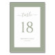 Numéros de table de mariage vert sauge simple mais élégant. Personnalisez facilement en ligne. Objets correspondants disponibles pour compléter cette carte de numéro de table mariage vert sauge moderne.