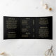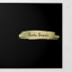 Brochure moderne triplée avec un trait abstrait de peinture or et votre nom dans un élégant script de brosse sur un arrière - plan noir. Le panneau arrière contient vos heures de fonctionnement et vos coordonnées. Le panneau de pliage intérieur comporte deux en-têtes et des zones de texte. L'intérieur a plusieurs modèles pour des informations sur votre entreprise sur les panneaux extérieurs et une liste de prix dans le panneau central. Les deux côtés ont des guides pliants qui peuvent être enlevés en cliquant sur le bouton "personnaliser". Une simple brochure triplée avec une touche féminine, parfaite pour un salon de ongles, salon de beauté ou coiffeur appartenant à une femme.